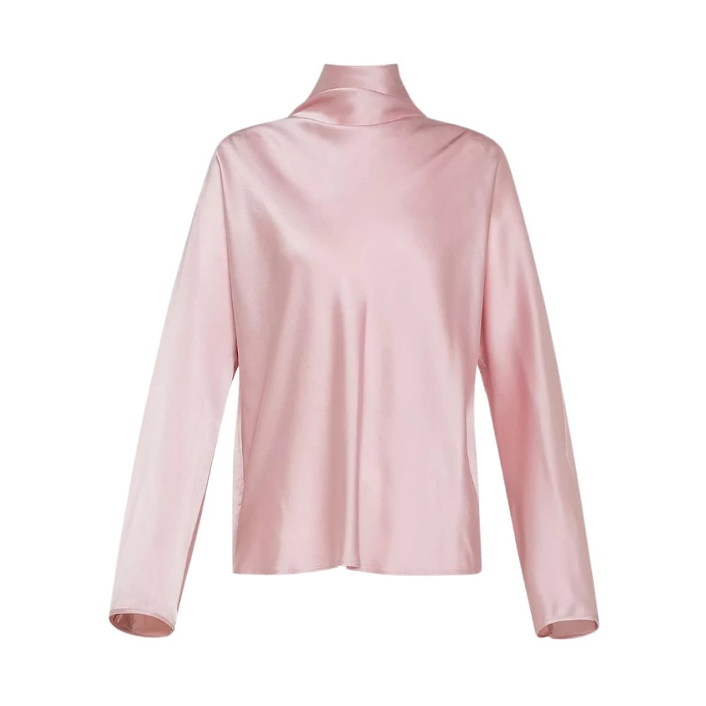 Forte Forte, Toppar , Dam, S, Silkessatin Blus med Hög Krage och Kimonoärmar