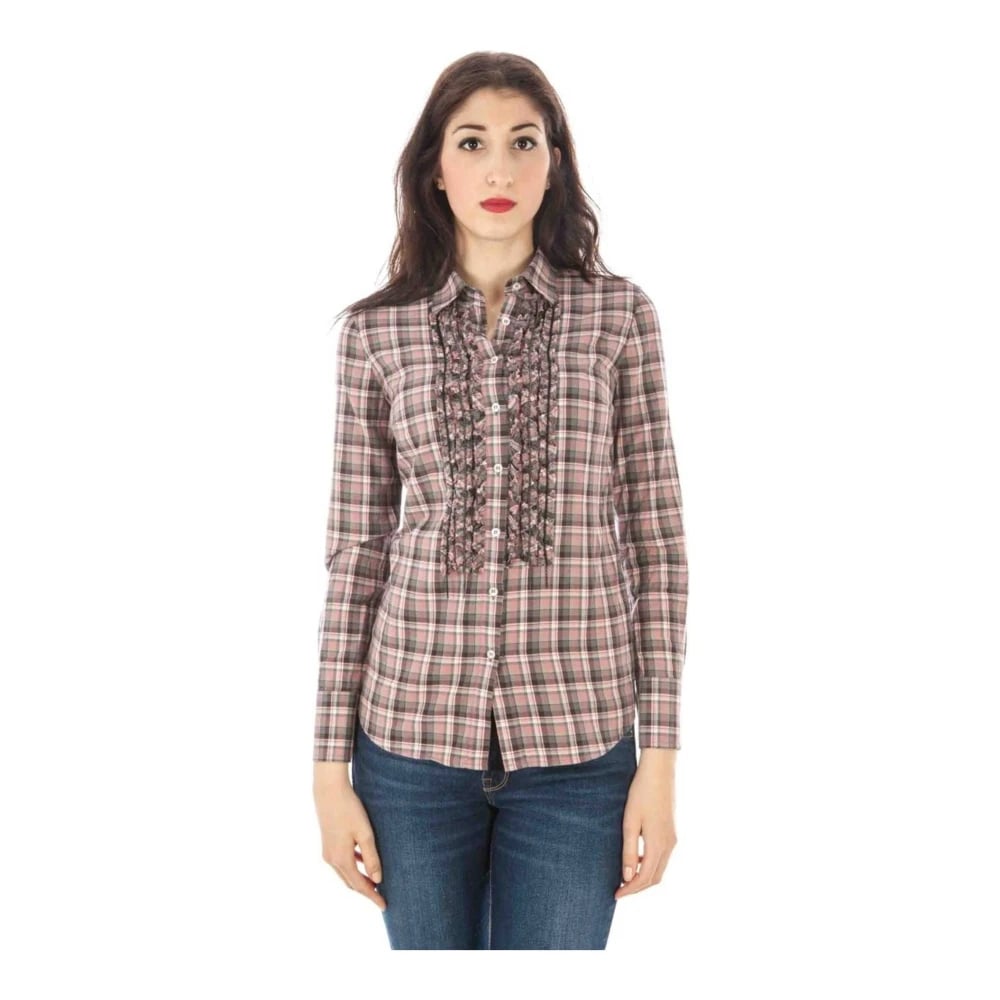 Guess, Toppar , Dam, M, Bomull, Ärmlös Blus med Knäppning och Klassisk Krage