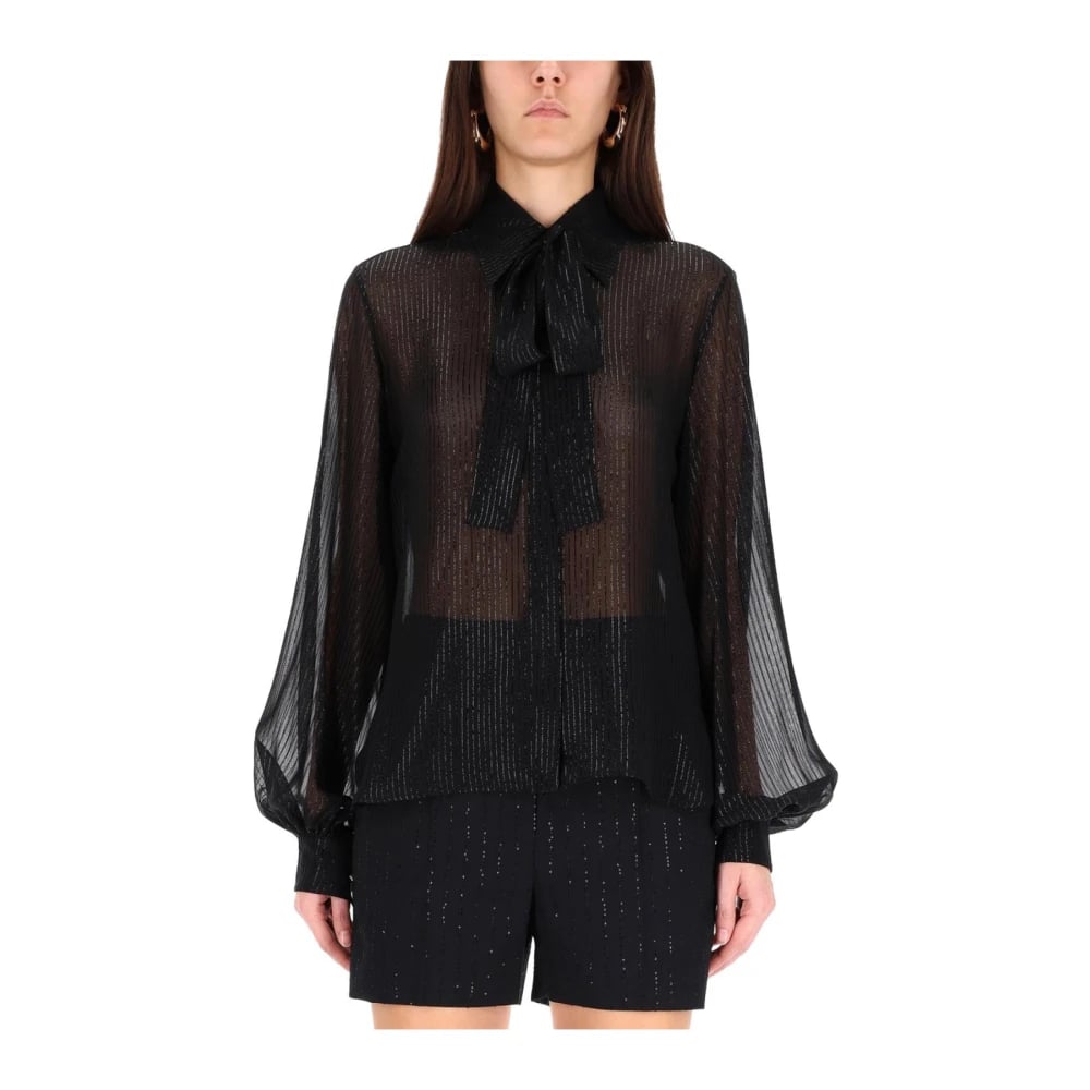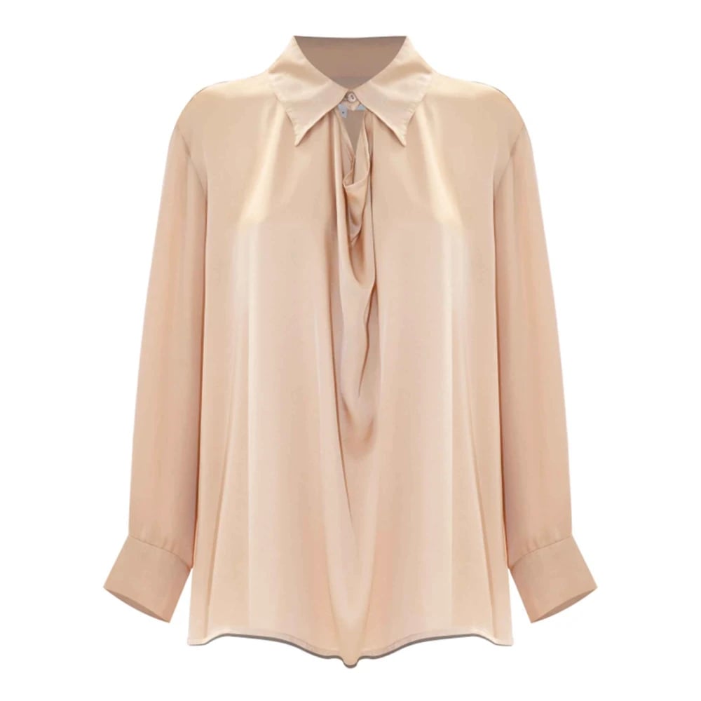 Elisabetta Franchi, Blusar & Skjortor , Dam, L, Georgette Blus med öppen rygg och krage