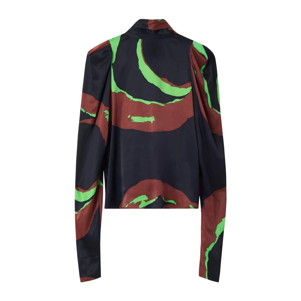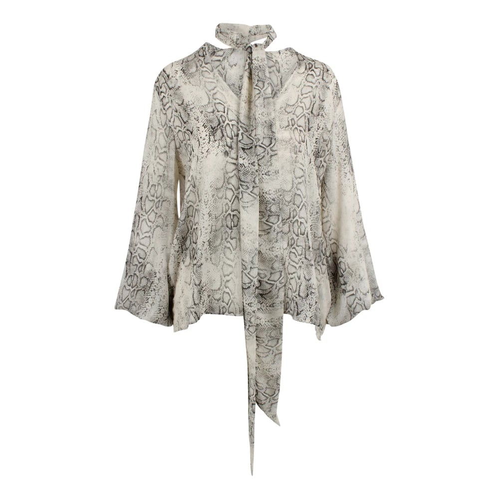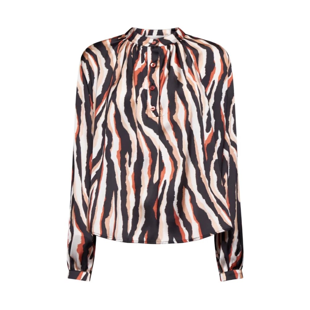Rinascimento, Blusar & Skjortor , Dam, M, Geometriskt Mönstrad Blus i Siden med Krage