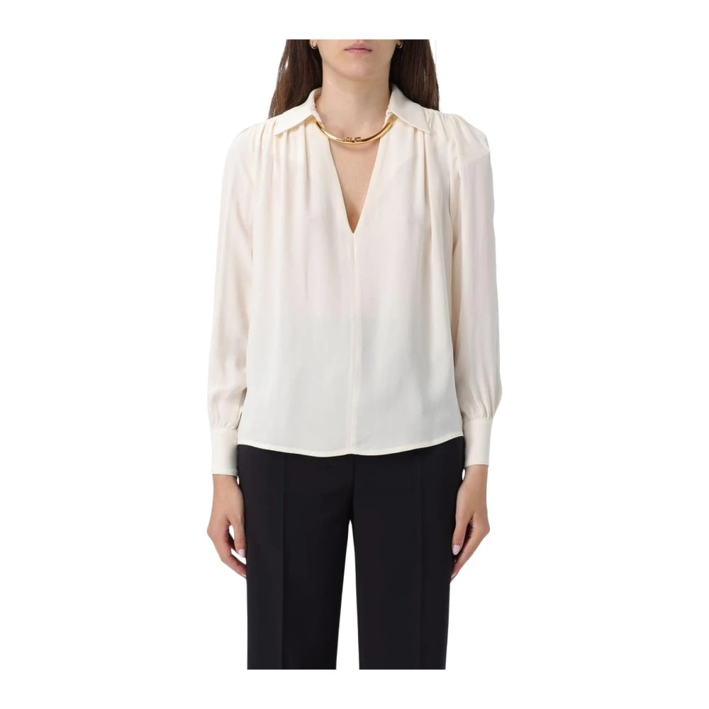 Elisabetta Franchi, Blusar & Skjortor , Dam, S, Krage Blus med V-ringning