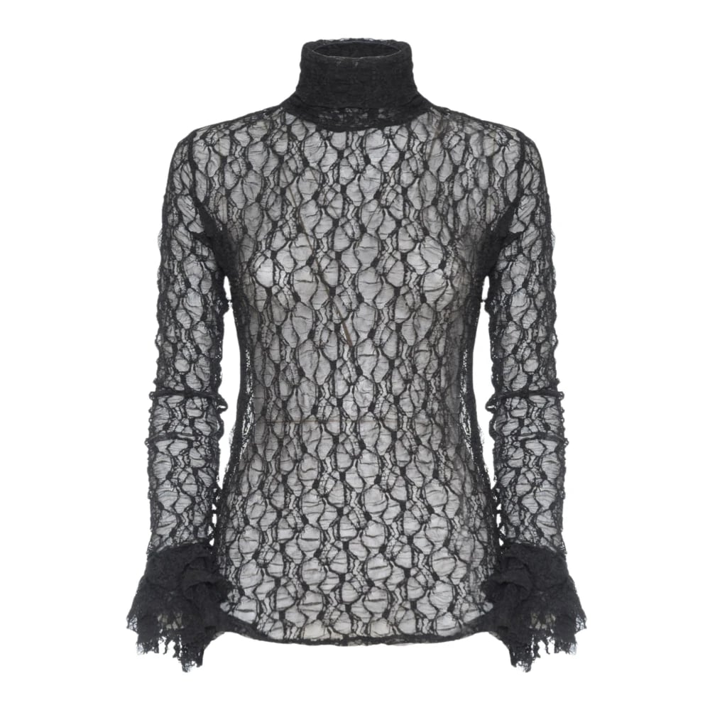 SoAllure, Toppar , Dam, L, Blus med hög krage och blommig spets