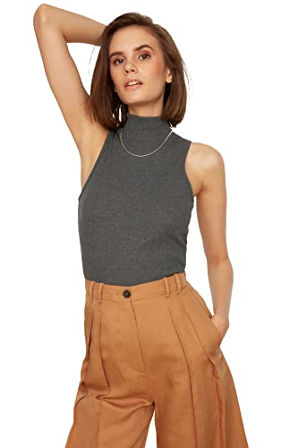 TRENDYOL Dam upprätt krage monterad med stickad blus blus, antracit, XS