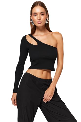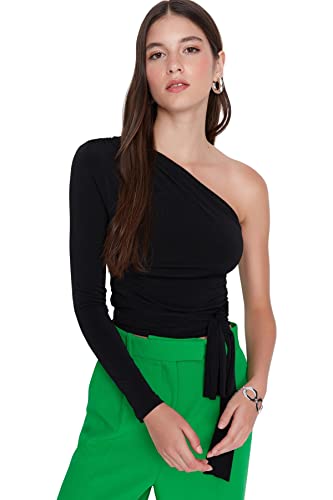 Trendyol Dam Basic stickad blus med asymmetrisk krage, Svart, XS, Svart, XS
