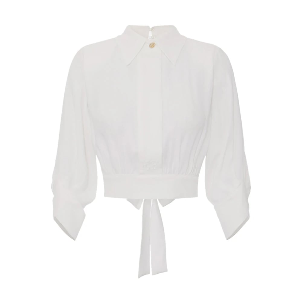 Elisabetta Franchi, Blusar & Skjortor , Dam, XS, Georgette Blus med öppen rygg och krage