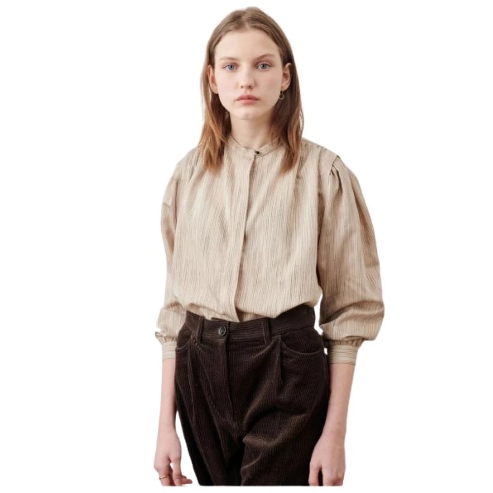 Sessun, Blusar & Skjortor , Dam, L, Polyester, Vid Blus med Mao Krage