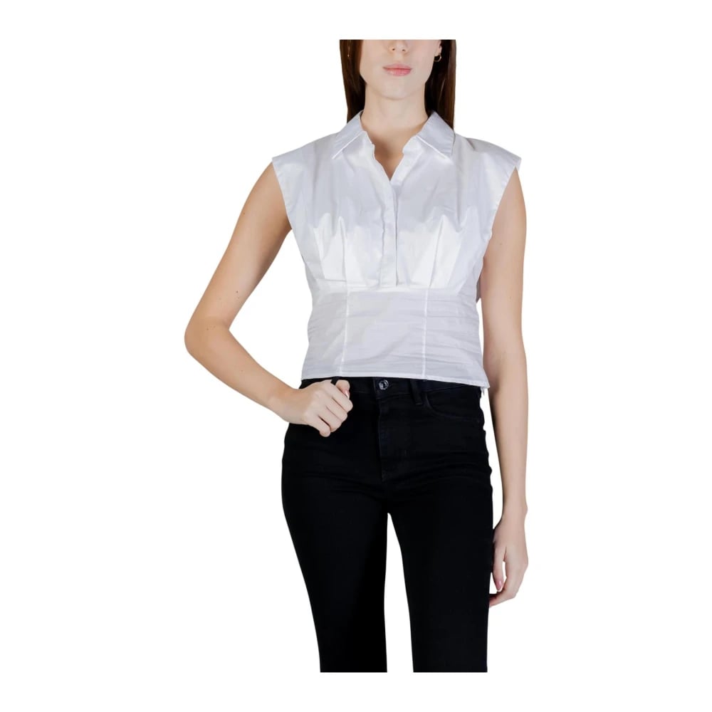 Guess, Toppar , Dam, S, Bomull, Ärmlös Blus med Knäppning och Klassisk Krage
