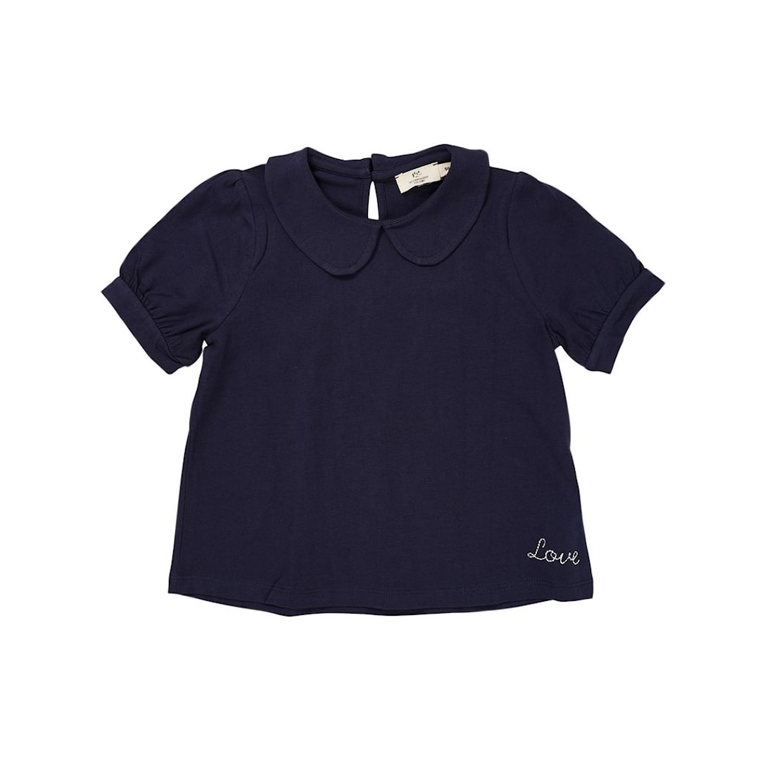 Copenhagen Colors Solid Kortärmad Blus Med Krage Navy 92 cm Blå 92 cm kvinna