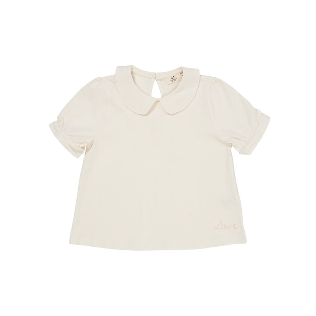 Copenhagen Colors Solid Kortärmad Blus Med Krage Cream 128 cm Beige 128 cm kvinna