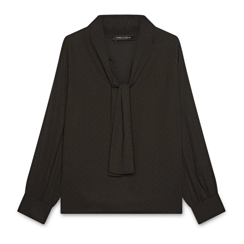Fiorella Rubino, Blusar & Skjortor , Dam, 2Xl, Polyester, Georgette-blus med små ljusa prickar och rosett