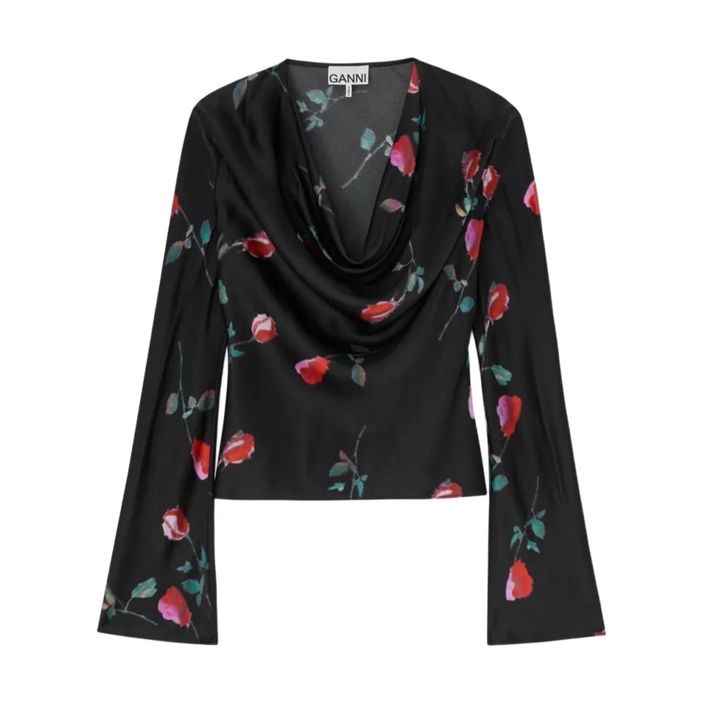 Ganni, Blusar & Skjortor , Dam, M, Tryckt blus i satin