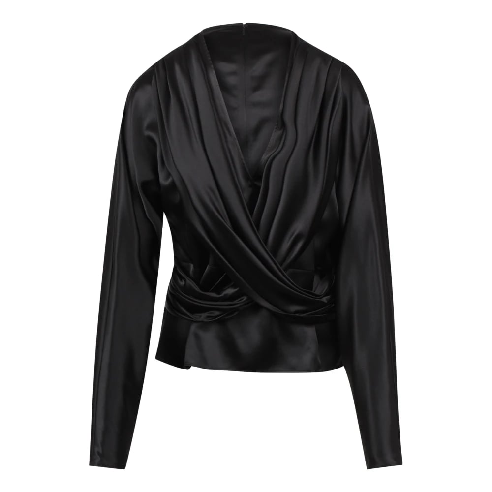 Nina Ricci, Blusar & Skjortor , Dam, S, Draperad V-ringad blus i satin