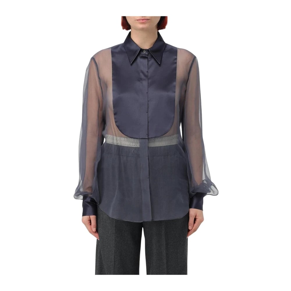 Brunello Cucinelli, Blusar & Skjortor , Dam, L, Silk Chiffon Satin Blus
