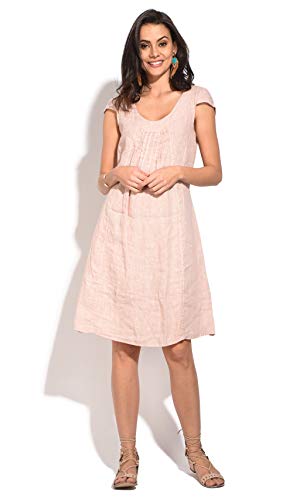 Bonateks Dam 100% linne tunika tillverkad i Italien, V-ringad blus och långärmad, satin, storlek: S, Satin, S