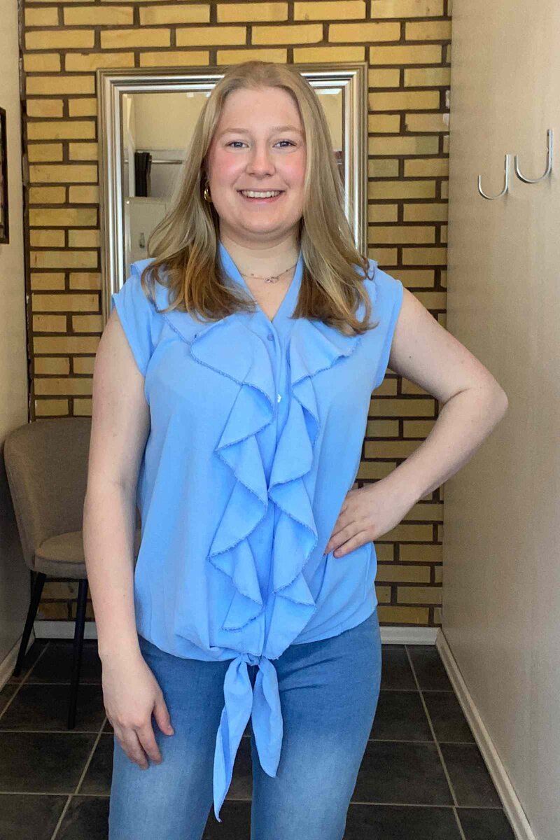 Chica London Hilda V-ringad Blus Volang Dam Light Blue