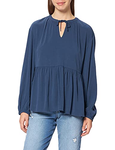 TOM TAILOR Damer Tunika blus med volang 1027058, 10378 - Dark Denim Blue, 34