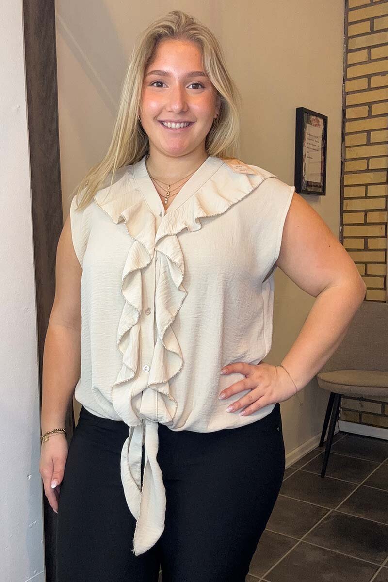 Chica London Hilda V-ringad Blus Volang Dam Beige