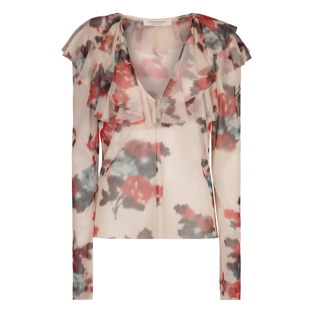 Philosophy di Lorenzo Serafini, Blusar & Skjortor , Dam, M, Polyester, Blus med volang och blomstermönster