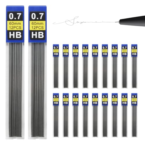 CAISYE Blyertsstift 0,7 mm okrossbar, högkvalitativ hartspåfyllning, 12 påfyllningar, plastförvaringslåda, skissa, teckning (240)