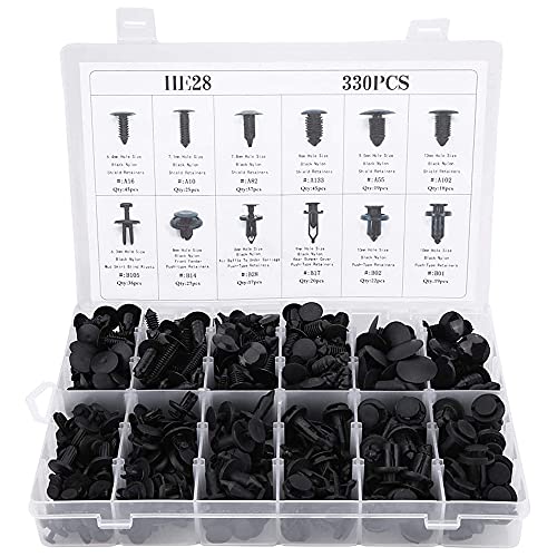 ANCLLO 330 st 12 storlekar bilplastnitar fästelement trycktyp stift nitar klämmor trimsats för Ford, Toyota, Honda, BMW, Raisler, Buick, Benz, Subaru och Suzuki