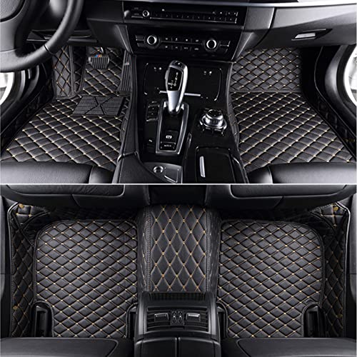 Bilgolvmattor i läder för B-MW 5-serien 520d 520e 530i 530d 530e 540i 540d 545e M550i 520i 520d anpassade bilgolvmattor vattentäta halkfria mattor skyddsset för alla väder c (färg: svart beige)