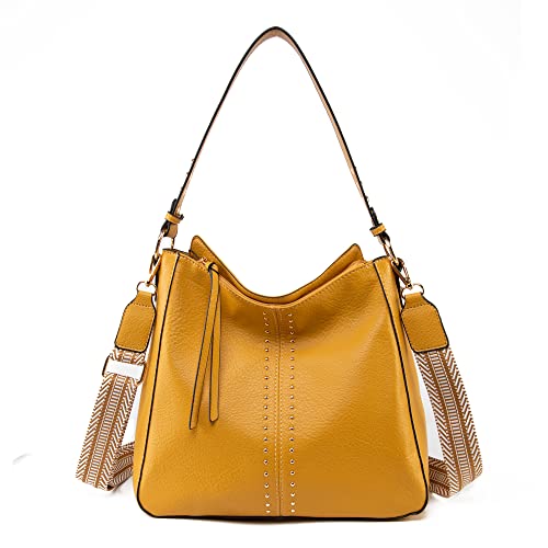 Montana West hobo-väskor för kvinnor topphandtag skolväska axelväska hink handväska, *Gitarrrem-senapsgul