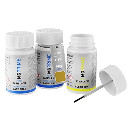 MG PRIME Billack Backstift set för BMW C1P / N2Z Galvanic Gold Metallic Motorrad basecoat klarlack 50ml vardera