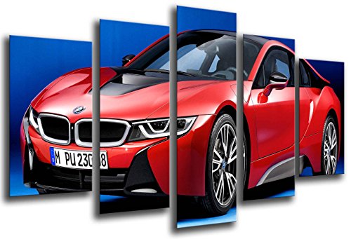 Väggmålning – Sportbil, BMW i8, röd, 165 x 62 cm, trätryck – XXL format – konsttryck – ref.26556