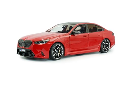 Solido BMW M5 (G90) 2025 – sportig affärslimousin, svarta accenter, kontrasterande fälgar, diecast modellbil, eldröd, 1:18