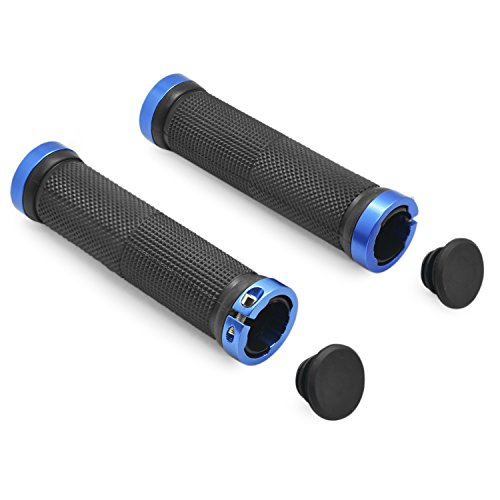 Aiqeer Mountainbike-Handtag - Ergonomiska Halkfria Gummihandtag Med Dubbla Lås för BMX, MTB, Diameter 22 mm (Blå)