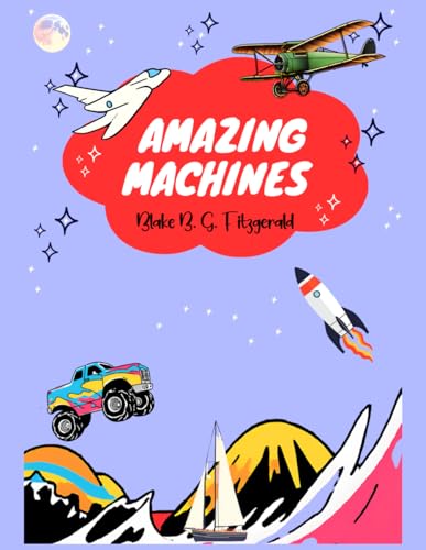Amazing Machines: A Fun Vehicles Coloring Book for Kids: Cars, Rocket Ships, BMX Bikes, Motorbikes, Tractors, Excavators, Air Balloons, and Planes! ... Balloons, and Planes! For Children Ages 4-11.