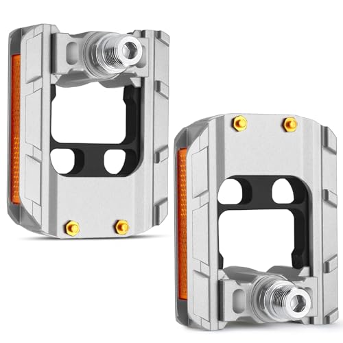 KOOTU Cykelpedaler vikbar halkfri, universal 23 cm fällbara pedaler med reflektorer vattentäta cykelpedaler för Road Bike BMX hopfällbar cykel vandringscykel och spinncykel (silver)