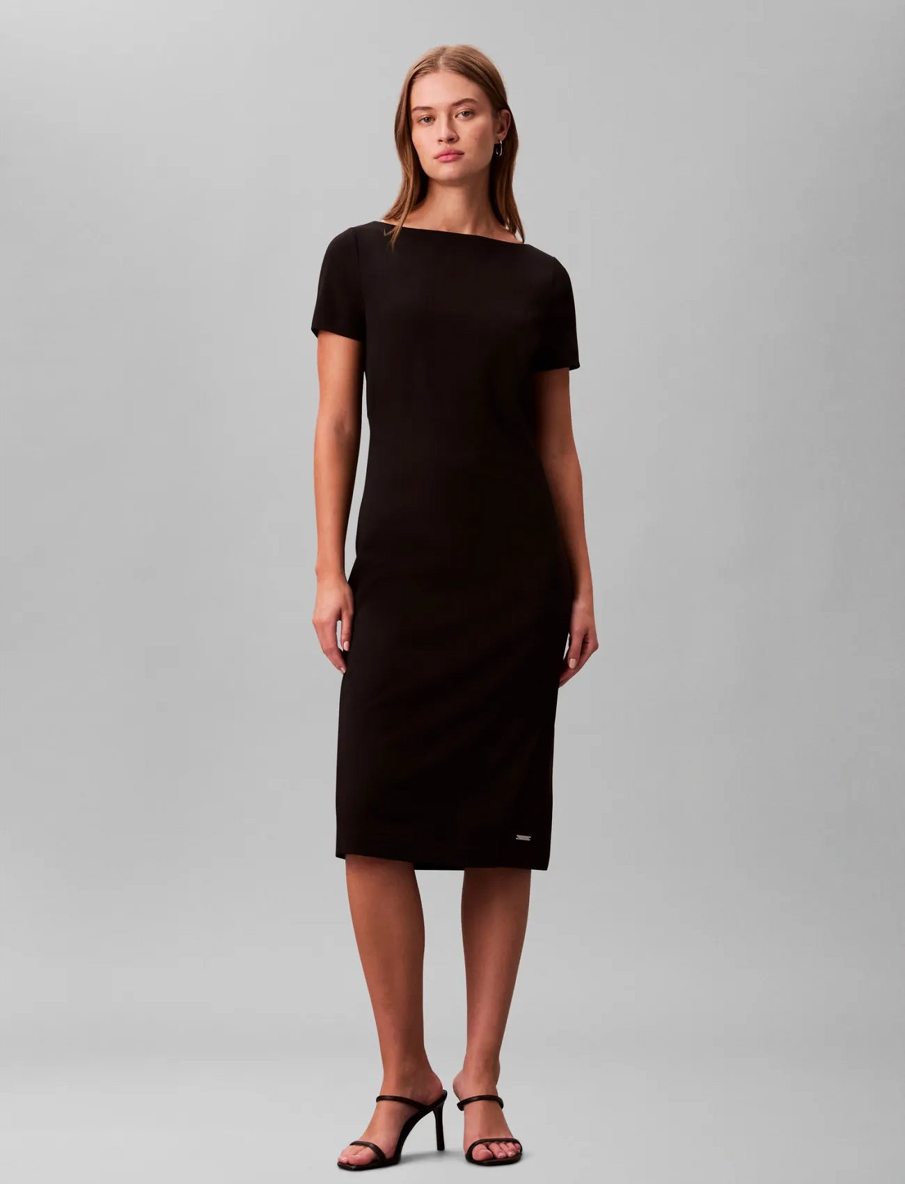 Calvin Klein Stretch Crepe Boat Neck Ss Dress - Black - 44