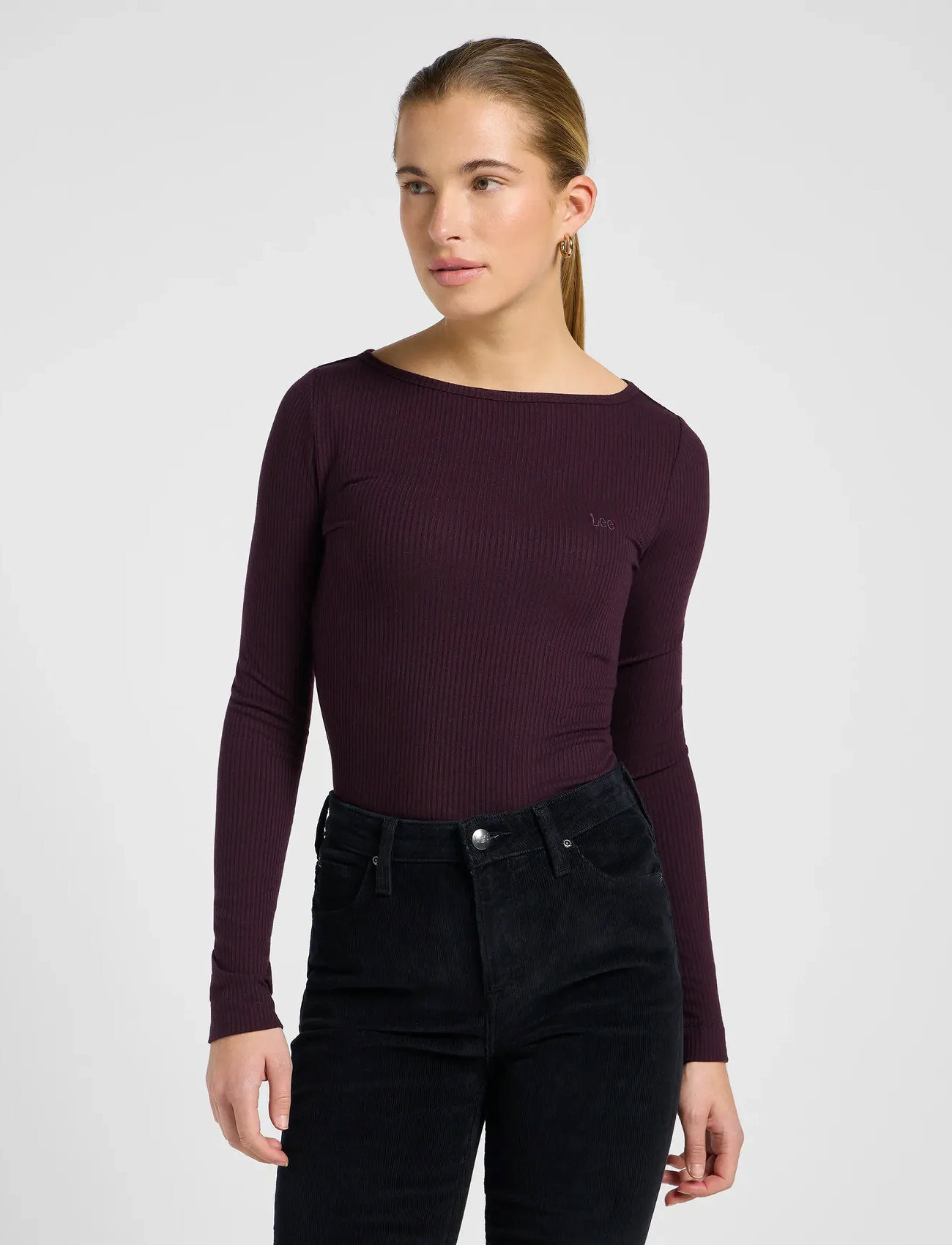 Lee Jeans Ls Boat Neck Tee - Burgundy - S