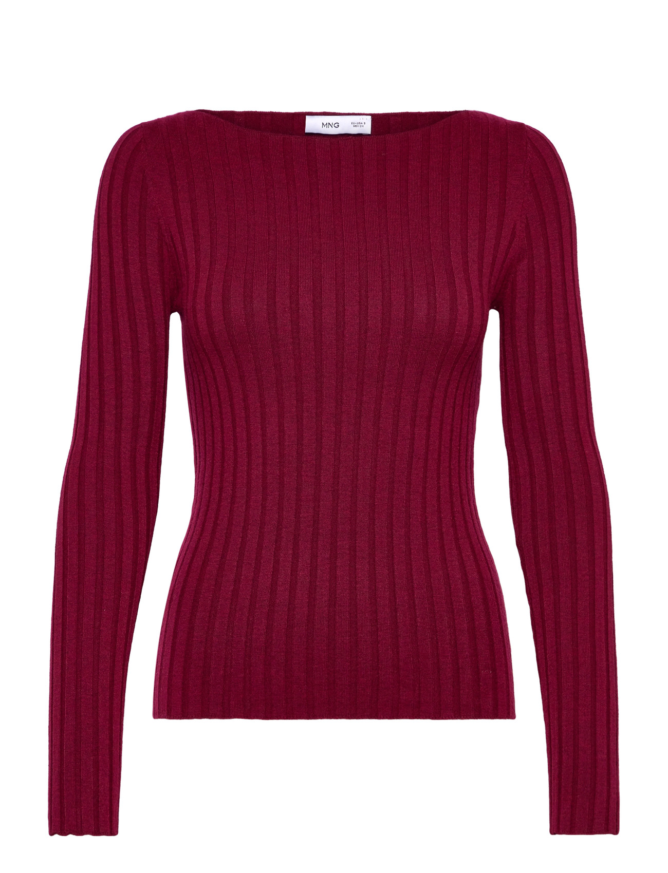Mango Boat Neck Ribbed Sweater - Burgundy - XS
