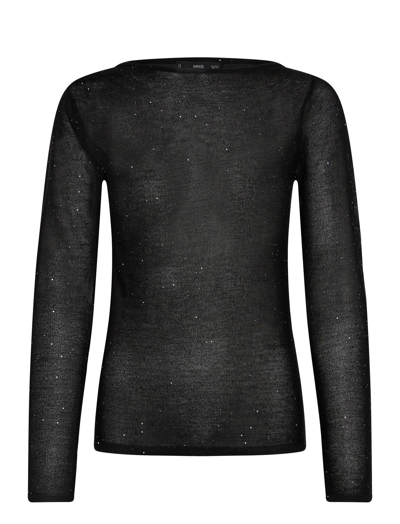 Mango Boat-Neck Top With Rhinestones - Black - XL