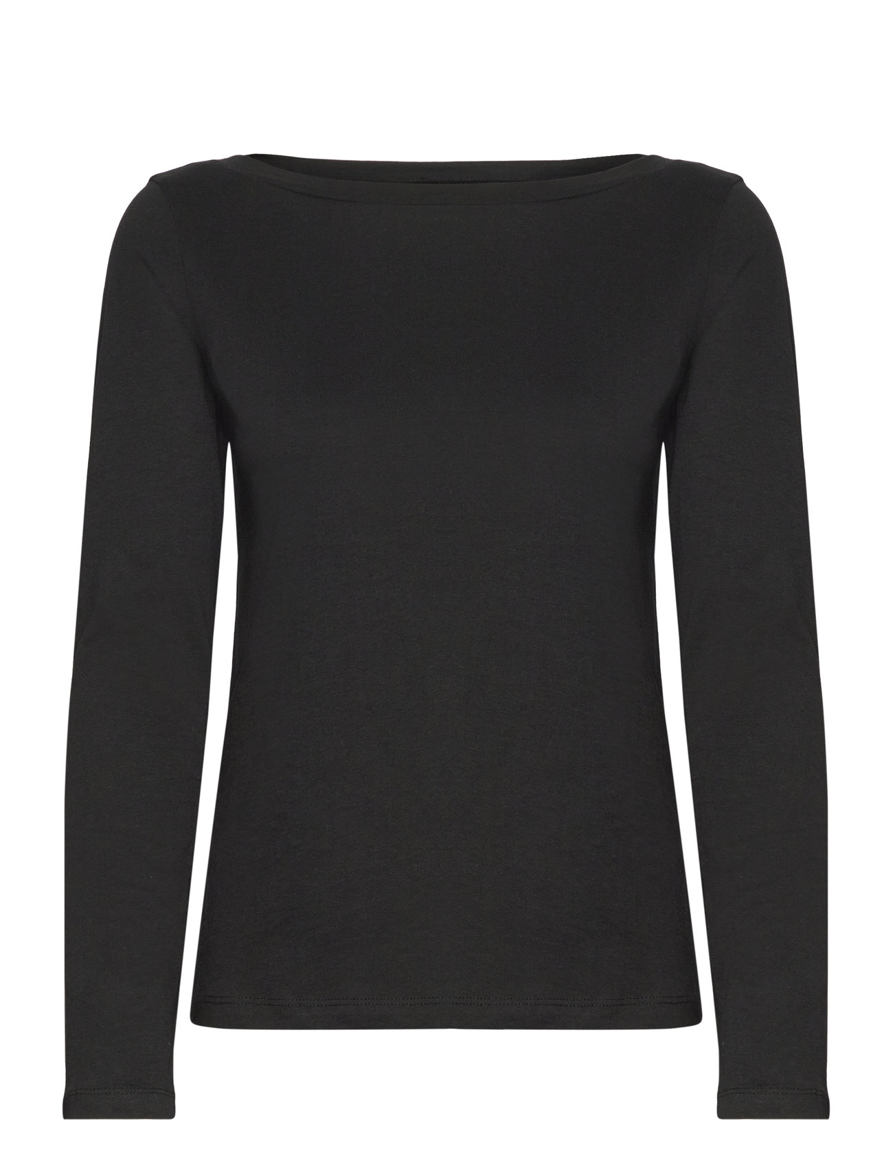 Mango Long-Sleeved Boat-Neck T-Shirt - Black - XS