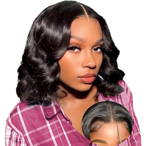 Human Hair Wig Glueless Wig Wear and Go 4x4 Pre Cut Lace Front Body Wave Wig Brazilian Straight Bob Pre Plucked Brazilian Wigs Natural Hairline Wig for Women 180% Density 10 inch (25cm)