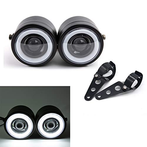 JMTBNO 6,5 tum motorcykel LED främre strålkastare svart 12 V universell strålkastare gul halo löpljus med hållare kompatibel med Honda Yamaha Suzuki Harley Cruiser Bobber Chopper Cafe Racer Retro