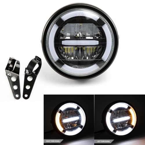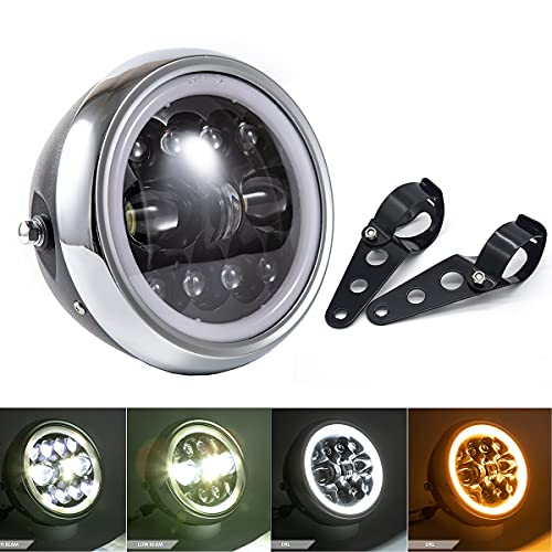 JMTBNO 6,5 tum motorcykel LED främre strålkastare svart 12 V universell strålkastare vit halo strålkastare med hållare kompatibel med Honda Yamaha Suzuki Harley Cruiser Bobber Chopper Cafe Racer Retro