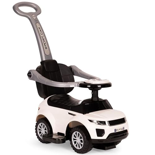 COIL Glidbil från 1 år med skjutstång 614 W – Baby Car halkbil för barn – 3-i-1-design – Bobby Car tillbehör – Glidfordon – Bobby Car med stång ratt (vit)