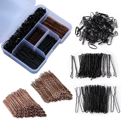 300pcs Brown Hair Pins Kit,U Shaped with Storage Box Pins,100 Pcs U-Shaped,100 Bobby Pin and 100 Rubber Bands,2Inch for Women Hairdressing Salons