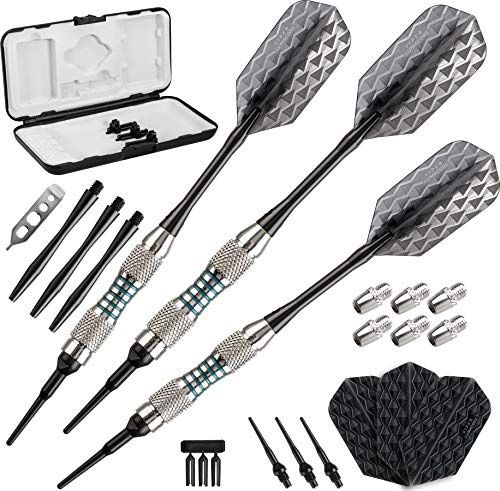 Viper Bobcat justerbar vikt mjuka spetspilar med förvaring/resväska: Svartbelagd mässing, blå ringar, 16-19 gram