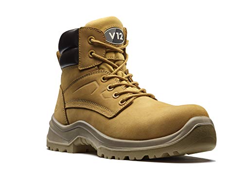 V12 Bobcat, S1P Nubuck-säkerhetsstövel, storlek 10, honung