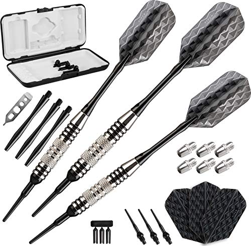 Viper Bobcat justerbar vikt mjuka spetspilar med förvaring/resväska: Svartbelagd mässing, lila ringar, 16-19 gram