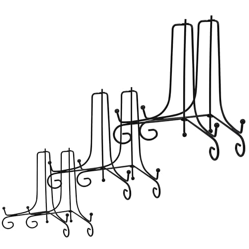 Belle Vous Tallriks Uppvisningsställ (6 Pack) – 3 Storlekar, 10, 15 och 20 cm – Svart Järnstativ Ställ/Metall Ram Hållare för Dekorativa Tallrikar, Bilder, Bordskonst och Böcker