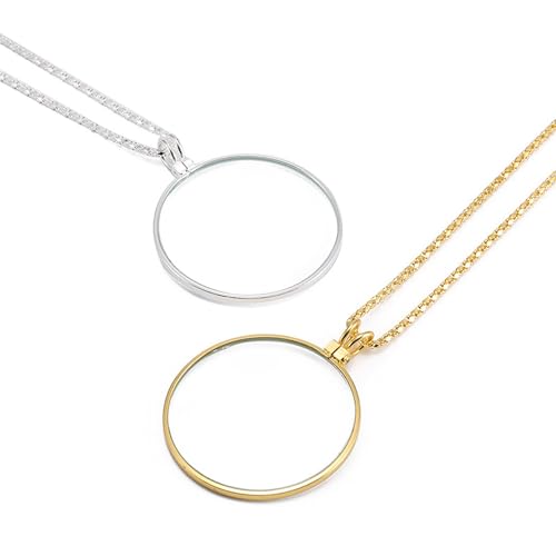 2 stycken monokel glasögon halskedja, 5 x metall miniförstoringsglas med kedja, smycke förstoringsglas kedja hänge, portabel hängande förstoringsglas objektiv monokel för läsning av böcker tidningar