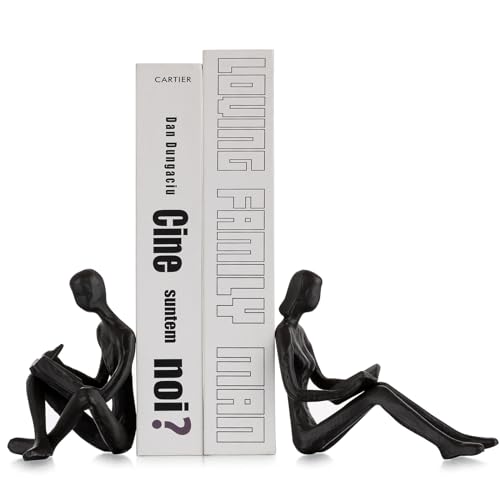 Sziqiqi Bokstöd för Hyllor Docorative - Gjutjärnsbokstöd för Tunga Böcker Läsande par Bokhylla Dekorativa Föremål Metall Modern Staty Bokstoppar Skulptur Present Till Läsare Bokälskare Nerd