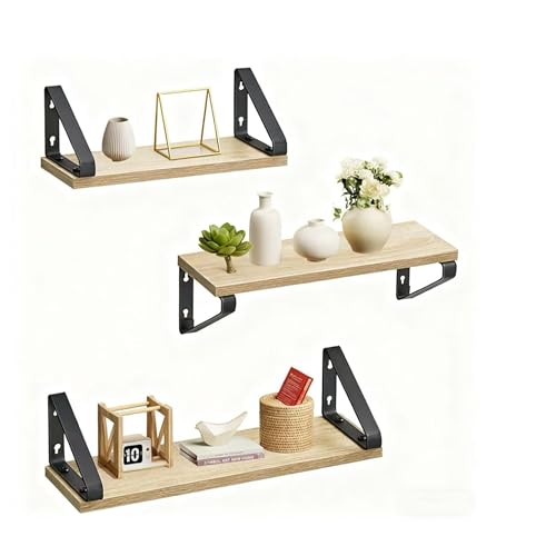 Navaris Vägghylla av trä och metall – Set om 3 flytande hyllor, hängande hyllor, hylla för bildramar, dekorativa böcker, blomkruka – enkel montering