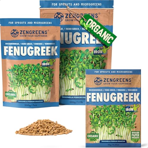 ZenGreens® - EKO Bockhornsklöver Frön - Välj mellan 10, 200g och 500g - Bockhornsklöver Frön med en grobarhet på över 97 procent - Groddar av Bockhornsklöver Frön - Microgreens
